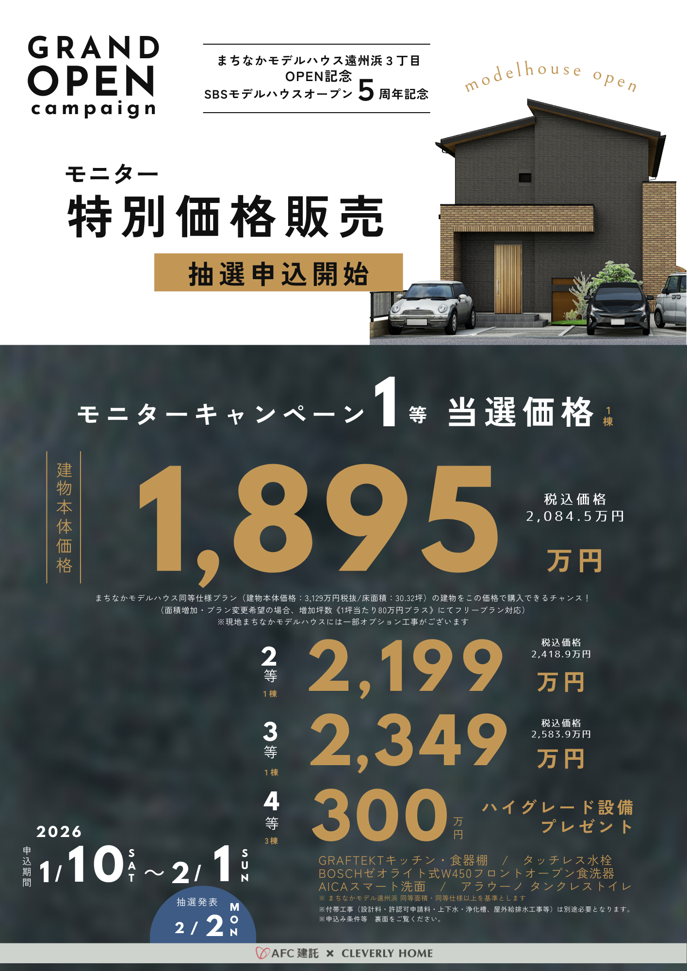《モデルハウスOPEN記念》モニター特別価格抽選キャンペーン